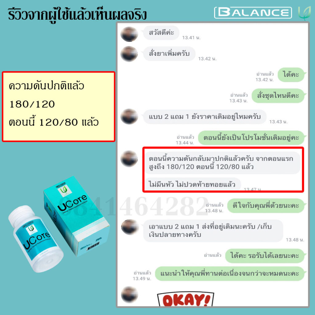 ทานใดที่กำลังเป็นโรคความดันโลหิตสูงอยู่ ป้าแนะนำเลยค่ะ บาลานซ์ ยูคอร์ ไม่ต้องลองผิดลองถูกอีกต่อไปค่ะ หากปล่อยไว้นาน ยิ่งทรมาน ตอนนั้นสั่งชุด 2 แถม 1 ตามคำแนะนำ ทราบว่ายังมีโปรโมชั่นนี้อยู่ รีบเลยค่ะ