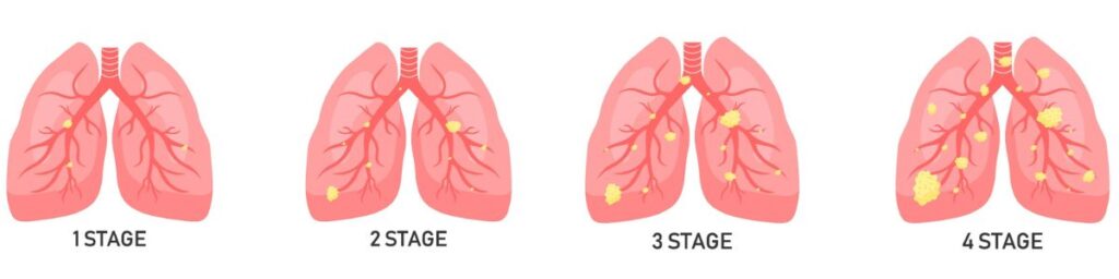 2.มะเร็งปอดชนิดไม่ใช่เซลล์เล็ก (Non-Small Cell Lung Cancer) มะเร็งปอดชนิดนี้จะมีการแพร่กระจายได้ช้ากว่า และถ้าหากตรวจพบตั้งแต่ระยะแรกๆ จะสามารถรักษาให้หายได้โดยการผ่าตัด มะเร็งชนิดนี้พบได้ประมาณ 85-90% แบ่งออกเป็น 4 ระยะ คือ